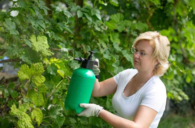 Виноград обрабатывается посредством опрыскивания рабочим раствором листьев куста.
