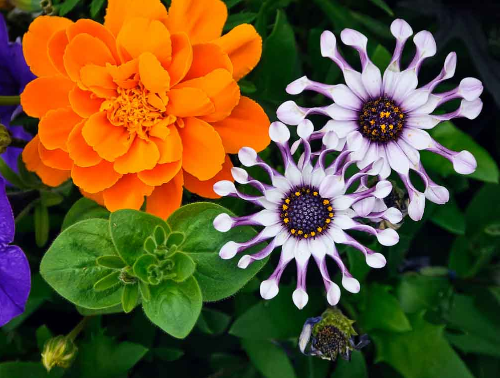 Оригинально сочетаются белые с голубыми сортами. Остеоспермум будет органично комбинироваться с альпийскими астрами, мальвой, ясколкой, геранью, лапчаткой.
