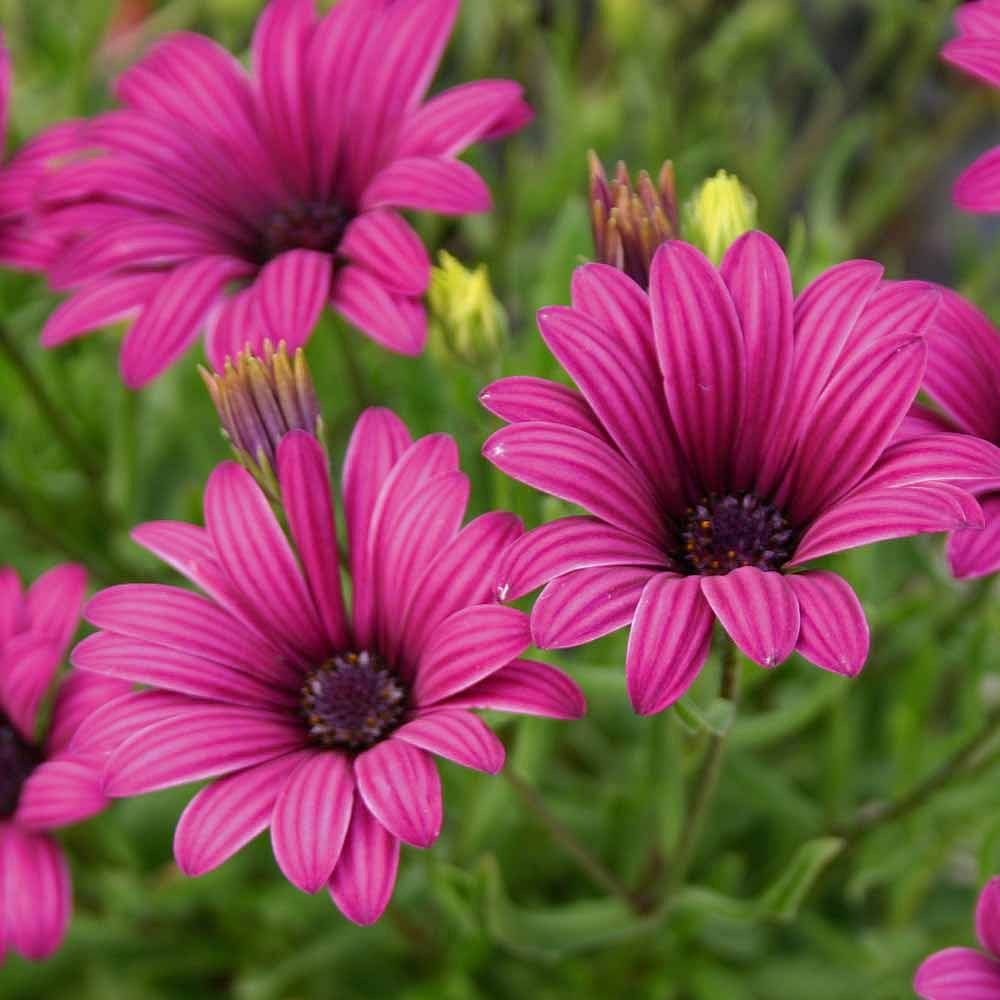 Остеоспермум приятный. Привлекательный теплолюбивый многолетник, который можно выращивать в контейнерной культуре. При благоприятных условиях практически весь год растение усыпано крупными пурпурно-розовыми цветками.