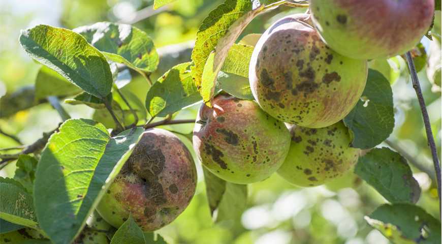 Осенью важно собрать и сжечь опавшие листья и сухие плоды. Важен подбор устойчивых к парше сортов