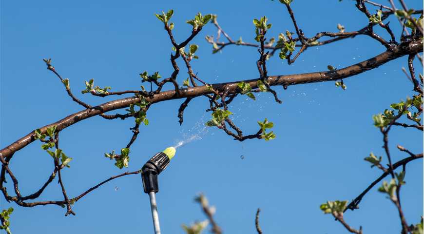 – В период распускания почек проводится опрыскивание 3%-ной бордоской жидкостью или ее заменителями.