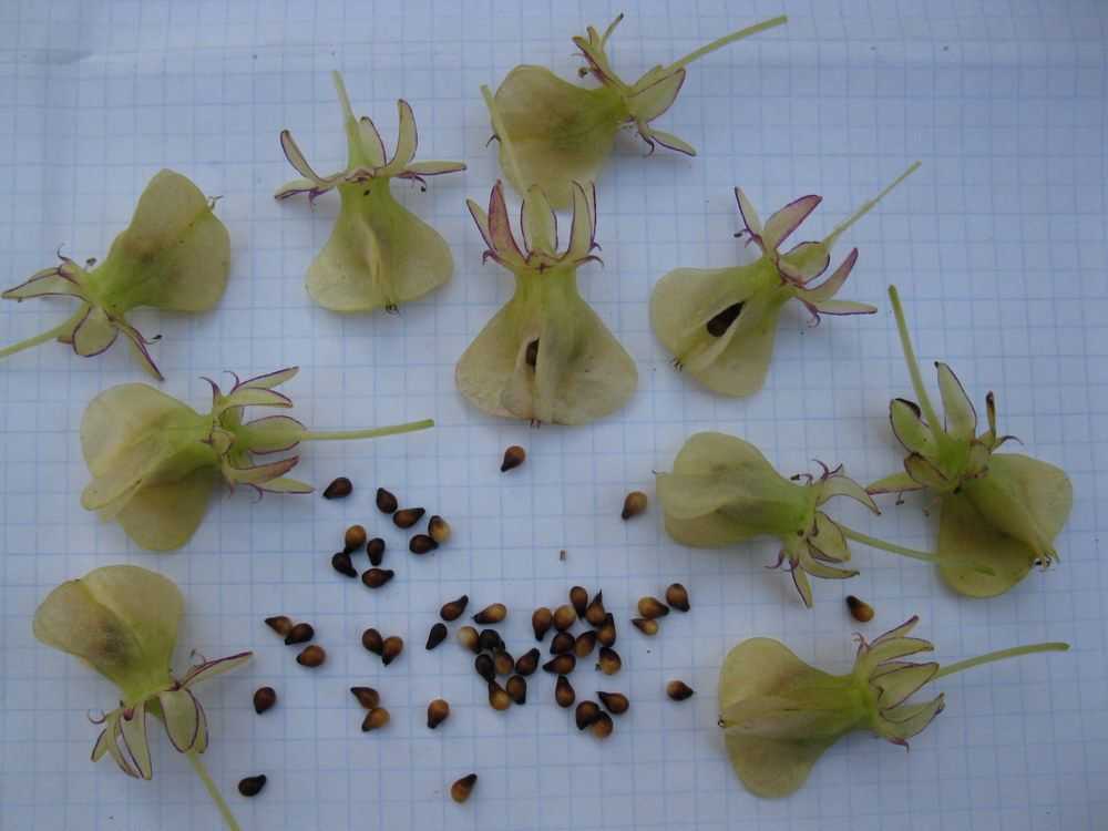Посадочный материал приобретают в специализированных магазинах или собирают самостоятельно в сентябре. Часто садоводы применяют небольшую хитрость: они не ждут, пока семена дозреют, чтобы не ослаблять материнское растение. Они самостоятельно обрезают стрелку. Ее нужно поставить в ёмкость, наполненную водой, и ждут пока коробочка подсохнет. Тогда можно извлекать семена. Они расположены в семенных коробочках. Высеивают их для рассады. Сразу же после сбора необходимо посадить их в контейнер с питательной почвой.