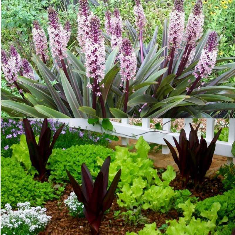 На клумбе ананасовую лилию комбинируют с такими растениями как: