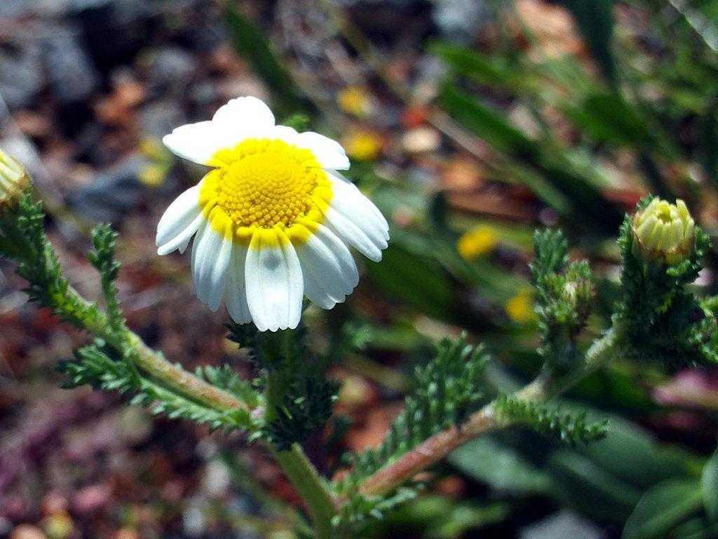 Однолетнее растение с ветвистыми стеблями, достигающие 0,6 метра в длину. Немного опушенные листья перистые. Цветочки схожи с ромашкой.