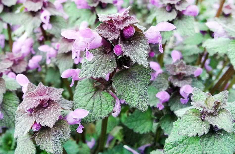 - («красная крапива») – многолетник с пурпурными цветками, нижняя губа которых украшена пятнистым узором;