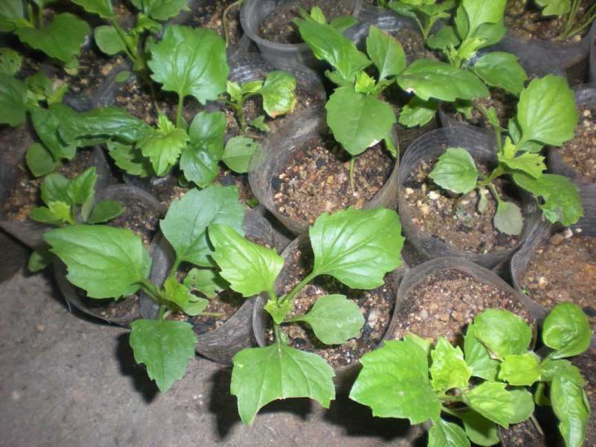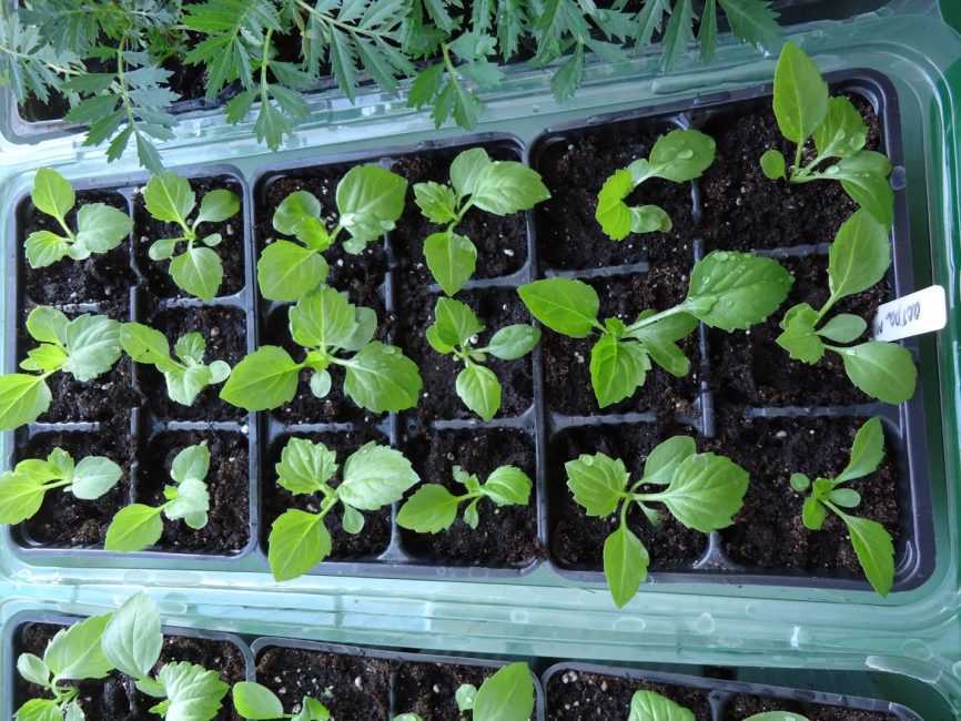Свежие цветочные семена прошлогоднего сбора быстрее всходят. Первые всходы можно ожидать уже на третий день. Затем посевную емкость переносят в помещение, где температура воздуха составляет до 16 градусов. Растения, сформировавшие по 3-4 листика, пикируют, укорачивая слишком длинные корешки. Пикировку проводят в субстрат, смешанный с древесной золой.