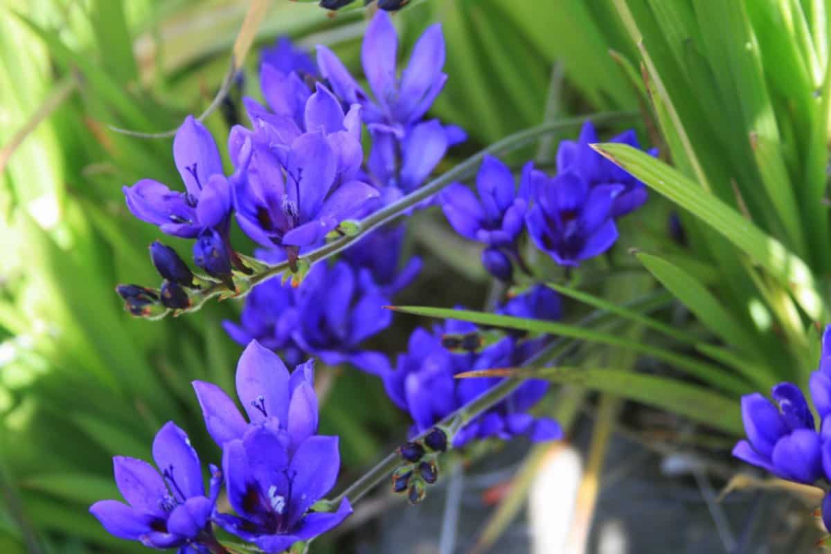 - Торчащая — смотрится не так нарядно, как остальные разновидности бабианы, но в нашем климатическом поясе встречается чаще всего. Своими цветками напоминает фрезию: они имеют чашевидную форму и окрашены в голубой, фиолетовый, белый, реже — кремовый цвет. Это быстрорастущее растение несмотря на непримечательную внешность может похвастаться приятным ароматом и не требует особого ухода.