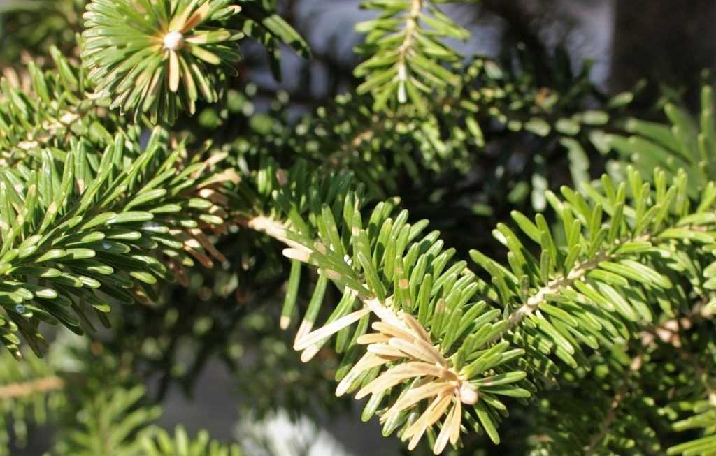 В некоторых случаях у данного дерева начинается пожелтение хвои, при этом на стеблях появляются ржавые подушки. Это свидетельствует о том, что пихта заражена такой грибковой болезнью, как ржавчина. Зараженные ветви нужно срезать и уничтожить, как и ту хвою, что опала, далее производят обработку мест срезов, используя для этого садовый вар. Крону так же следует обработать и для этого используют раствор бордоской жидкости (2%). Хорошо осмотрите участок, на котором растет пихта, если на нем имеется звездчатка либо ясколка, то эти растения обязательно необходимо выкопать и уничтожить.