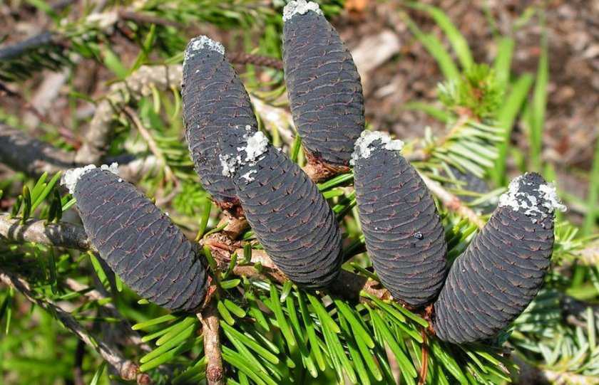 Сахалинская (Abies sachalinensi). Распространена на Сахалине, Курилах. В естественных условиях до 40 м в высоту. Имеет густую крону в форме правильного конуса. Зрелые шишки темного оттенка, кора серая, выделяет смолу.