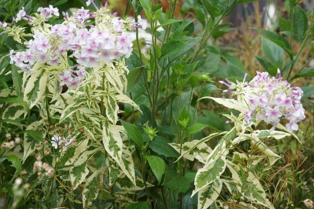 Phlox Paniculata Variegata — латинское название цветов, обладающих не только выдающимися оттенками соцветий, но и самих листьев. По описанию на листве растения этого вида образуется кайма. Она может быть темнее или светлее основного листа и различной ширины. Края каймы не ровные, заостренные подтеки устремляются в центр листа. Окраска цветов у этих сортов не отличается большим разнообразием. Пестролистный флокс паникулята ценится именно за окраску листьев.