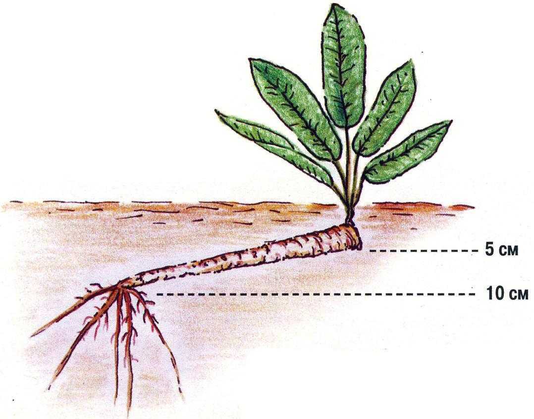 «Ослепление» помогает предотвратить образование боковых ответвлений корневища, таким образом, осенью мы получим цилиндрические, ровные корни.