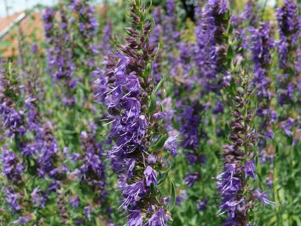 Растение иссоп (Hyssopus), или синий зверобой – полукустарник семейства Губоцветных с прямостоячими стеблями высотой около 50 см. Безусловно, очень полезное растение для сада – отличный медонос с длительным цветением (с июня по сентябрь). Иссоп, к тому же, замечательная пряность и лекарственное растение, с древности применяемое на кухне и в медицине.