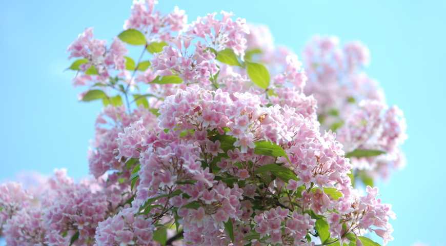Кольквиция обильно покрывается цветками в июле, когда все остальные кустарники отцветают.