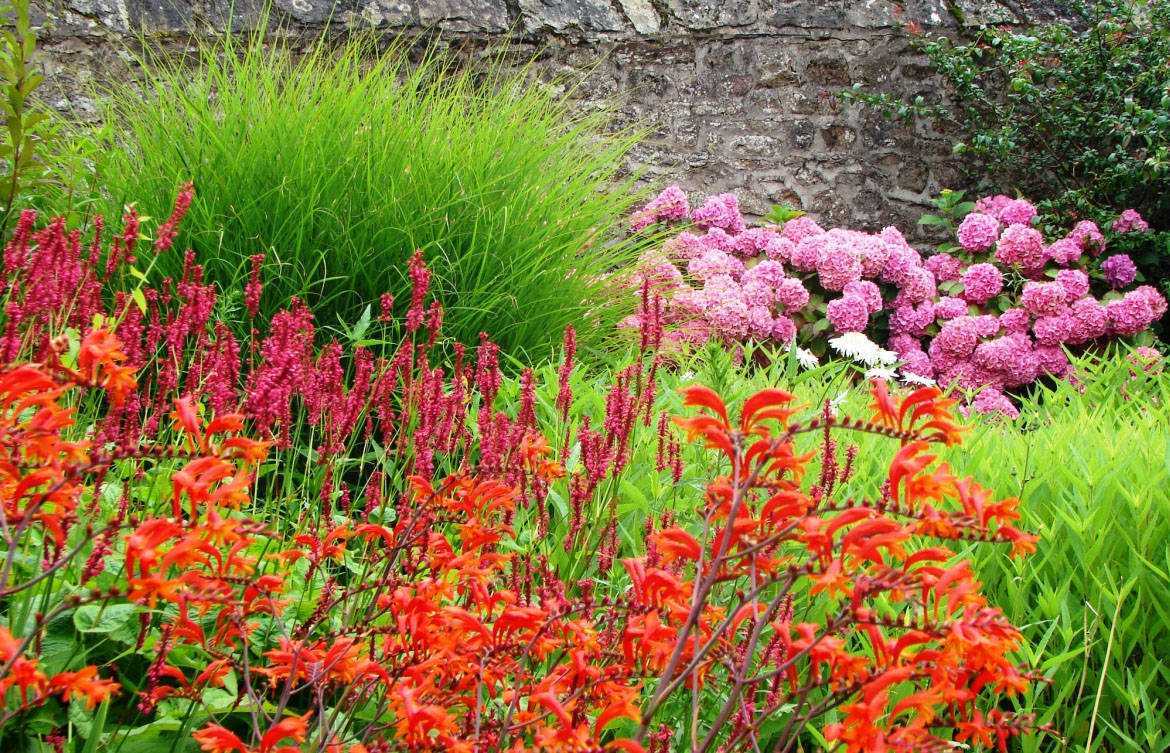 Тритония хорошо уживается с другими цветущими растениями разных семейств, а также с декоративными злаковыми.