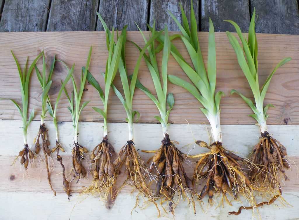 Если растение плохо держится в почве, некоторые корни выходят наружу и занимают надлуковичное пространство, таким образом удерживая стебель в равновесии.