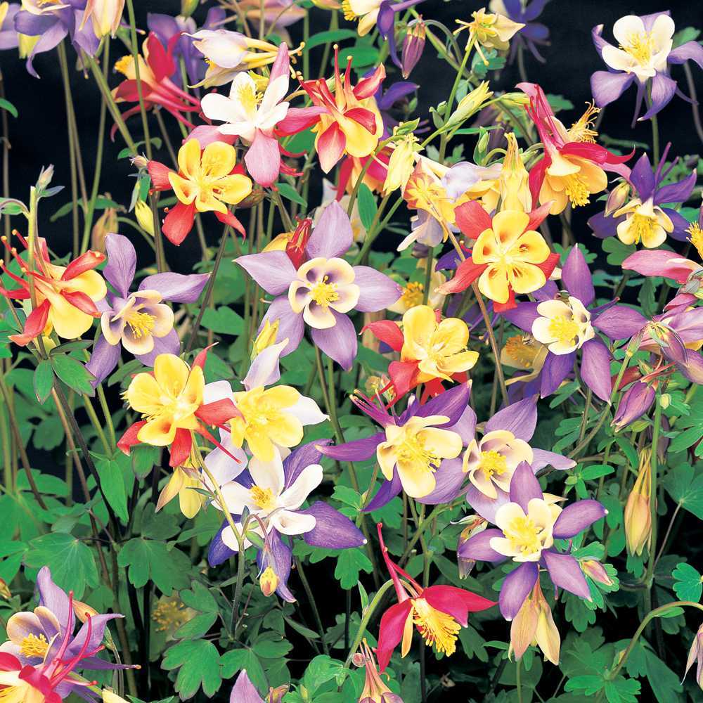 Группа сортов подразделяется на аквилегию блэк, блю и пинк, в цветочных магазинах продается смесь семян для получения разнообразной окраски бутонов. Посмотрите на фото смесь оттенков аквилегии и одиночные экземпляры с разной окраской бутонов: