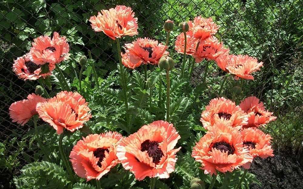 - Мак восточный – разрастается до полутора метров в высоту и ширину, с махровыми и простыми цветками до 20 см диаметром. Встречается с ярко-красными цветами. В результате селекционных работ выращены садовые сорта с цветками нежного лососевого, сливового, красно-оранжевого окраса без пятна у основания.