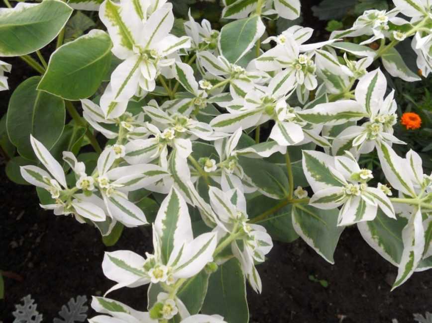 Имеется множество видов молочая, которые сажают в саду: окаймленный, разнолистый, миндальный. Также на дачных и садовых участках может появиться сорняк ― молочай кипарисовый. У него нежные стебли с густой листвой.