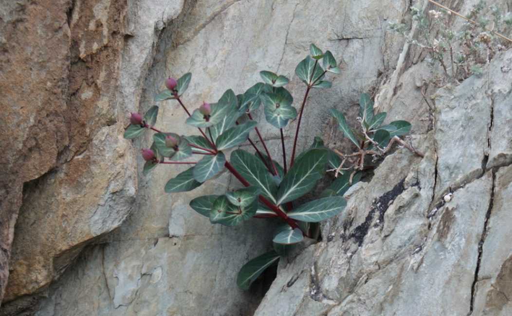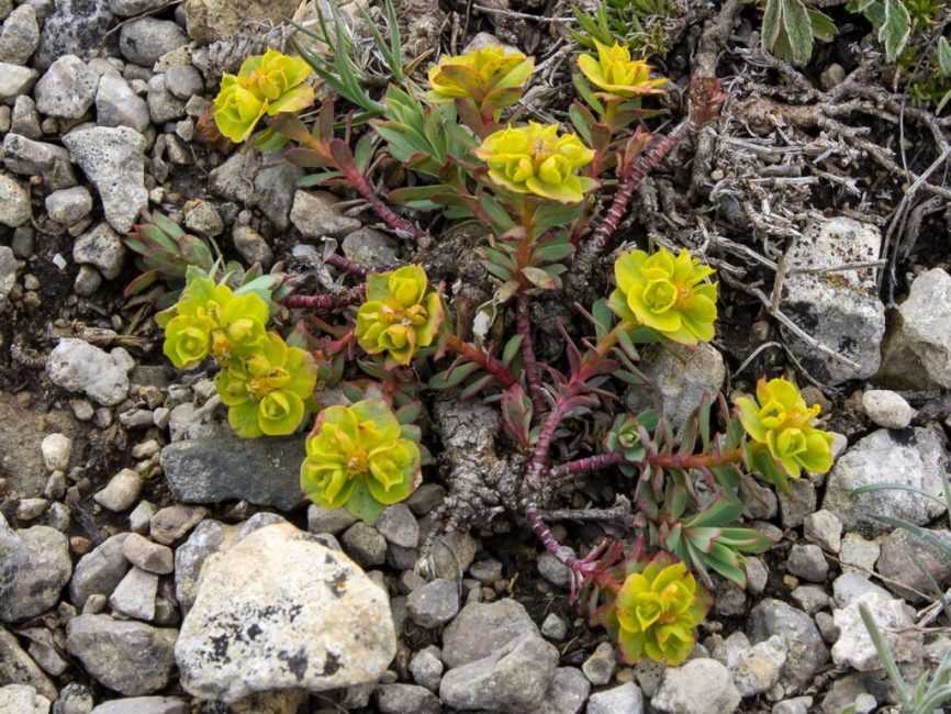 - Молочай также вырастает на камнях. Имеет стебли высотой 20 см. У культуры очень красивая сизо-зеленая с беловатыми прожилками листва, имеющая изысканную форму.