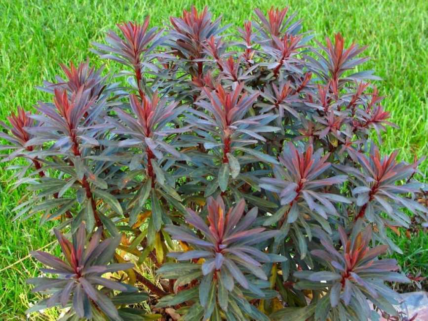 - Пурпуреа. Относится к предыдущей разновидности (полное название — Euphorbia Amygd Purpurea), но отличается роскошными пурпурными листьями.