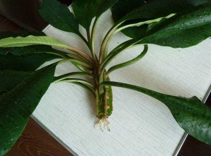По этой причине вам необходимо удалить нижние листья, чтобы не допустить попадания через них слишком большого количества влаги, молочай все еще будет дышать, а вода все равно будет теряться в результате черенкования.