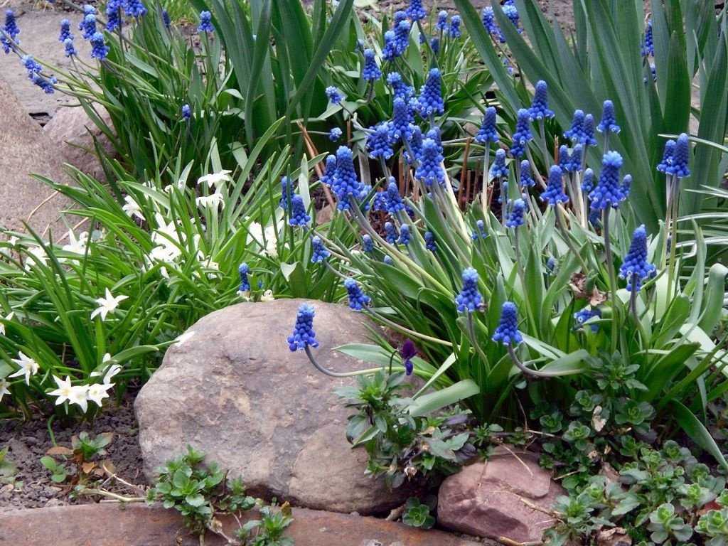 И выкапывают, и высаживают луковицы мускари осенью. Зимующие в почве растения можно прикрыть слоем торфа или елового лапника, однако обычно луковицы мускари хорошо переносят даже сильные морозы.
