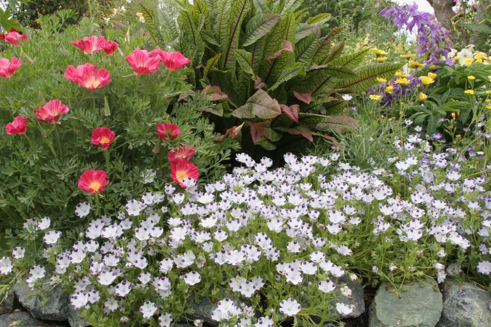 Немофила хорошо сочетается со многими низкорослыми однолетниками.