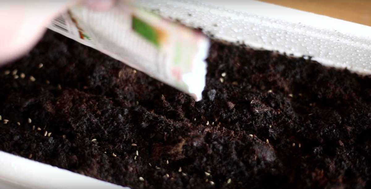 - Произведите посев семян. В один маленький горшок следует посадить 3-5 семян, в общую емкость семена следует сажать на расстояние 2-3 см.