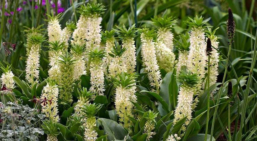 Более известен как ананасовая или хохолковая лилия, относится к многолетним луковичным растением. Вполне успешно выращивается в кадочной и комнатной культуре.
