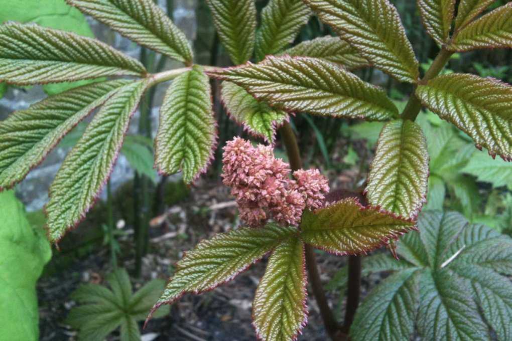 - Роджерсия подофилловая. Встречается эта разновидность растения в Китае, Корее и Японии. Каких либо особых примет этот сорт не имеет, за исключением большого количества рельефных жилок на листьях. Во время распускания, ее листья имеют бронзовый оттенок, но со временем они становятся зелеными.