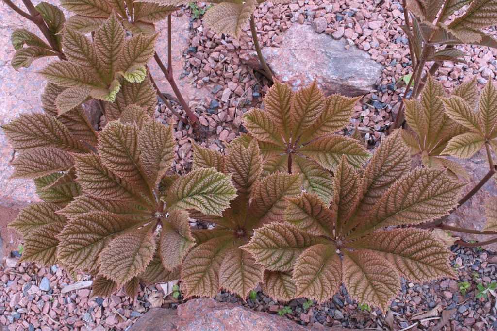 - Роджерсия конскокаштанолистная. В дикой природе ее можно встретить в горах Китая. Ее листья отличаются бронзовым оттенков. Растение может вырасти в высоту до 140 см.