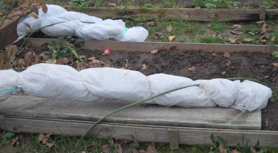 Когда на улице установится холодная, с периодическими заморозками погода, основание куста засыпают смесью торфа и сухой почвы на высоту в 30 сантиметров. При наступлении устойчивых морозов розе необходимо дополнительно укрыть розу сначала лапником или соломой, а затем укрывным материалом, накинутым на предварительно установленный каркас.