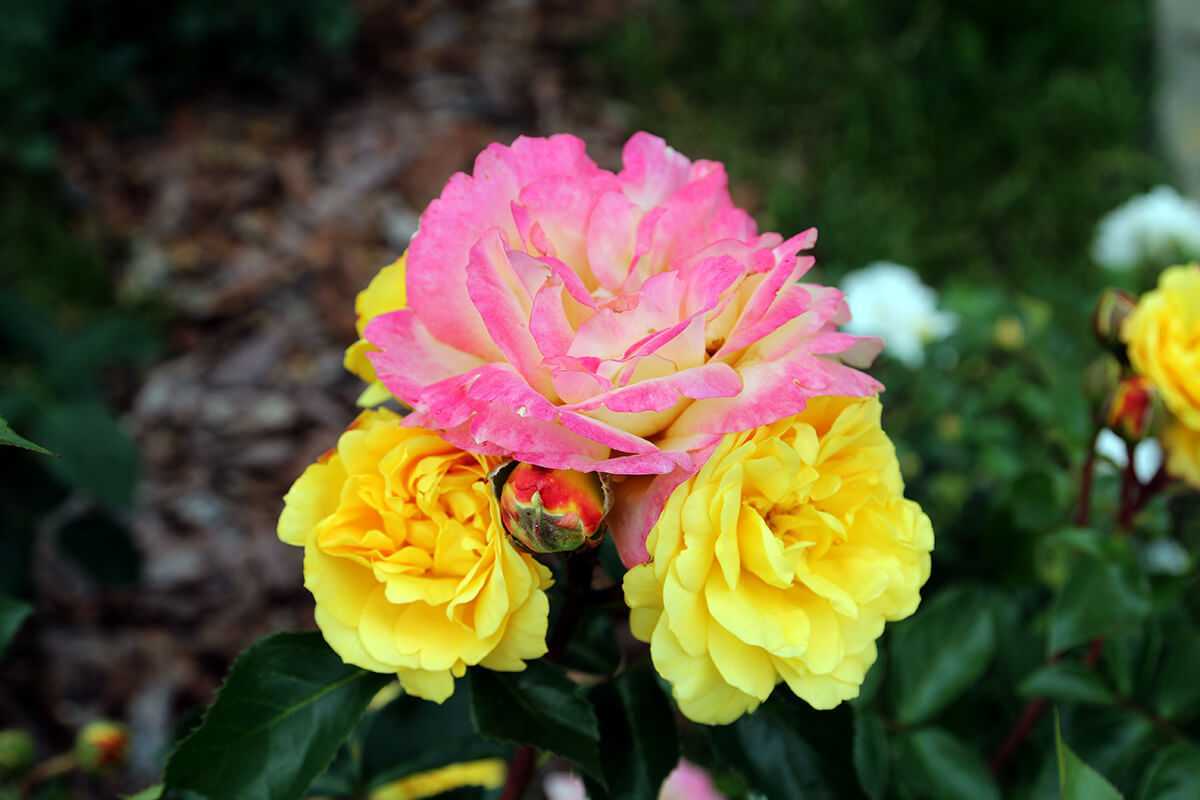 Очень полезным будет покрыть землю вокруг роз мульчей из опилок или торфа. Это поможет сохранить влагу, защитить от сорняков. В случае если в период посадки стоит жаркая погода, то можно укрыть свои саженцы с помощью бумажных колпачков. После того как розы пройдут период адаптации, укрытие можно снять.