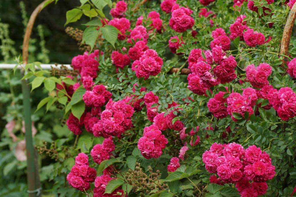 Сорт Дороти Перкинс идеально подходит для создания оригинального вертикального озеленения. Культура цветёт в начале лета, заполняя сад обилием ярких бутонов. Кустарник нужно сажать у опоры, чтобы растение могло плестись и создавать затейливые формы своими ветвями.