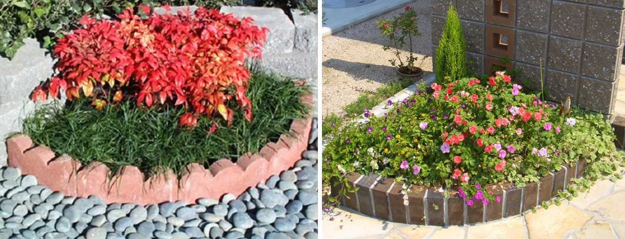 Хорошим вариантом применения кирпича, камня будет клумба с плавными, извилистыми линиями, длинная, округлой, круглой или иных, далеких от прямоугольника форм.