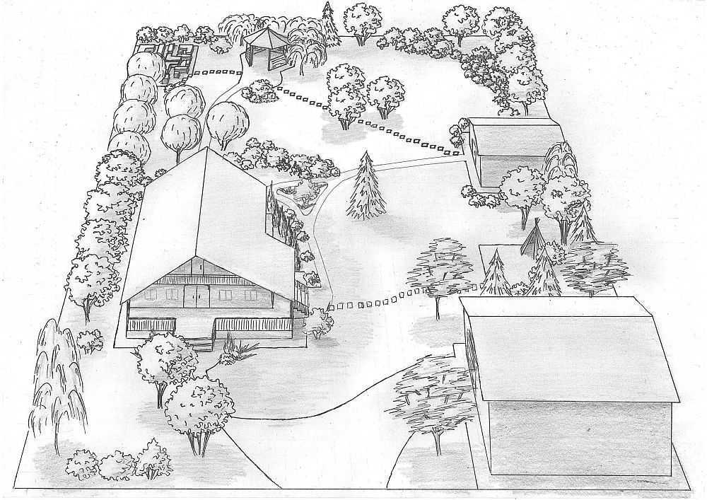 Далее приходит черед того, что очень хочется. Обычно это — беседка, прудик или фонтан. Пруд и фонтан можно совместить, недалеко поставить беседку. Вплоть до того, что одним своим краем она может нависать над водой. На другом берегу можно поставить лавочку, разместив возле нее арку или соорудив перголу (та же арка, но более основательная). Возле беседки можно сделать небольшой навес и поставить мангал. Металлический или кирпичный — по выбору. Под водоем лучше всего отвести самый низкий участок или там, где подпочвенные воды ближе всего. Все остальное пристроятся на свободное место.