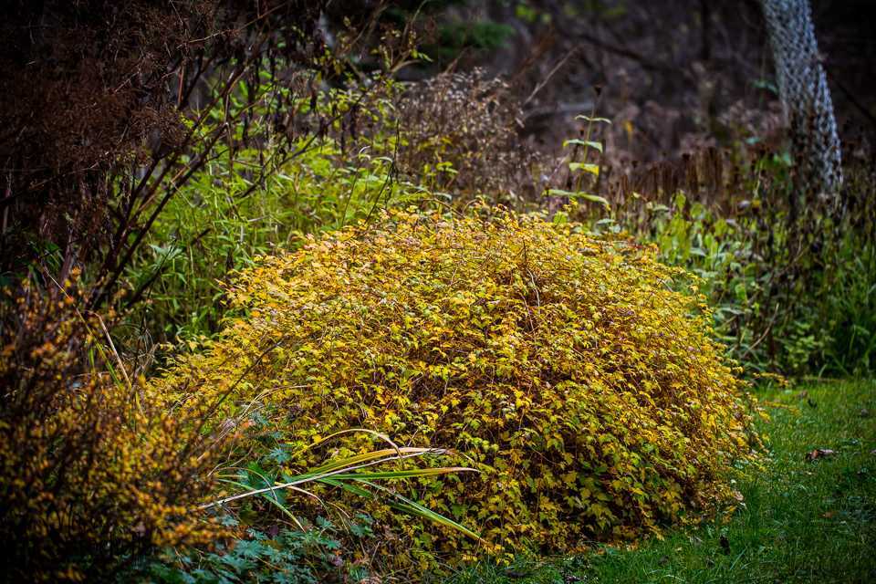 Осенью кустарник Танаки меняет окраску так же, как и другие сорта, листья становятся бордовыми, пурпурными или коричневыми. Поэтому кустарник выглядит декоративно и летом во время цветения, и осенью.