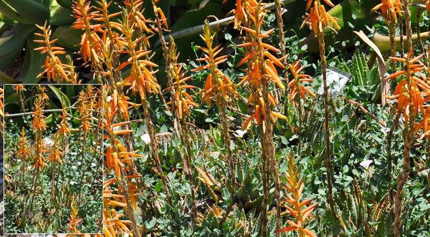 Обычное древовидное алоэ раньше росло практически в каждом доме, но цвело оно редко, отчего и получило свое меткое название «столетник». В природных же условиях цветет оно значительно чаще, и многие туристы удивляются крсоте его цветков, не признавая в этом цветущем красавце бабушкин столетник.