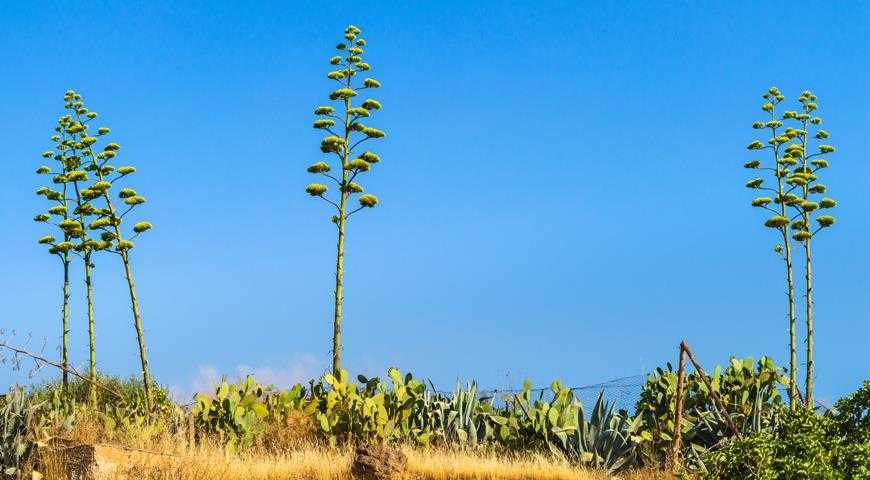 Туристов восхищают огромные соцветия, намного выше человеческого роста, входящие из розеток алоэ. Нет и нет, это не алоэ, это агава! Больше всего, конечно, впечатляют соцветия агавы американской.