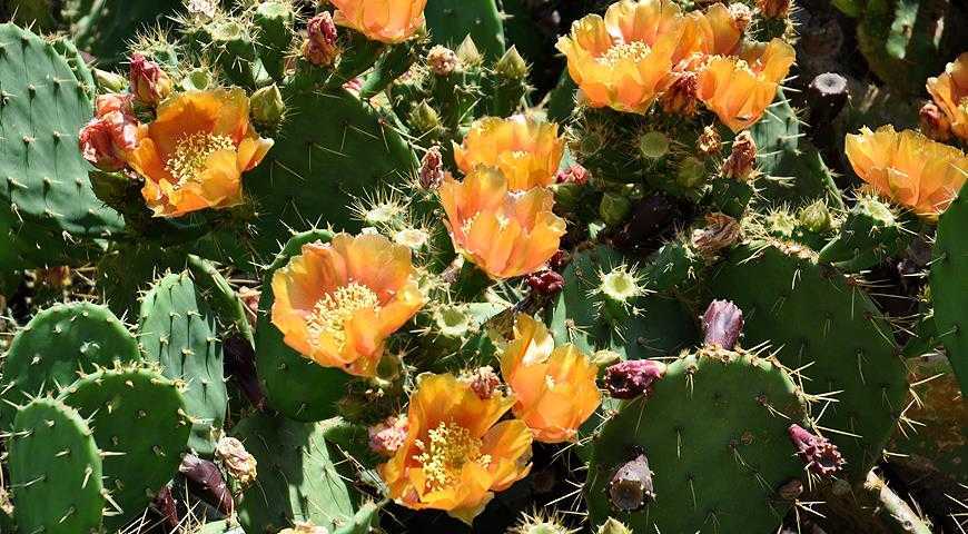 Наверно самые любимые туристами цветущие кактусы! Еще ни один любитель фотоохоты не уехал с моря без фотографий цветущей опунции. Ее желтые и оранжевые цветочки украшают многие фотоальбомы путешественников.