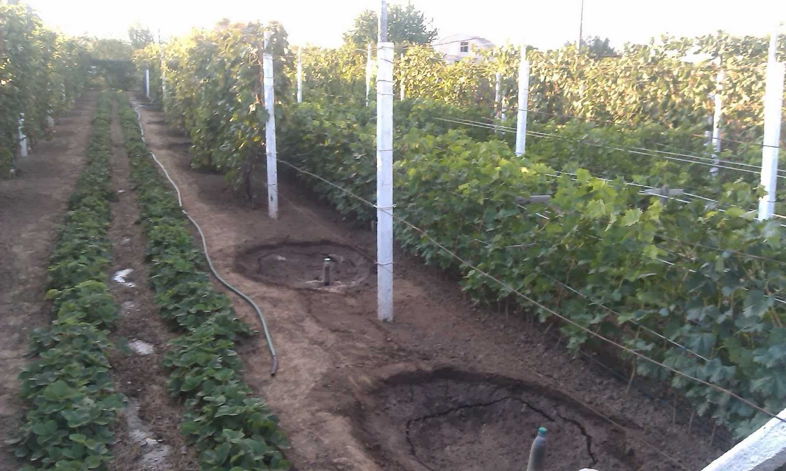 Перед посадкой винограда выкапывают ямы величиной 60х60 см. Глубина находится в границах 0,8-1 м. На дно углубления выкладывают дренажный слой, состоящий из гальки, щебня или мелких обломков кирпича. Средний слой состоит из смеси питательного чернозема, песка и щебня в соотношении 3:0,5:1.