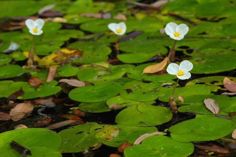Подбирая растения для водоемов, всегда нужно учитывать их разрастание. Лягушечник может заплести всю поверхность, если пруд малых размеров. В таком случае полезно периодически поводить обрезку побегов, удаляя молодые розетки.