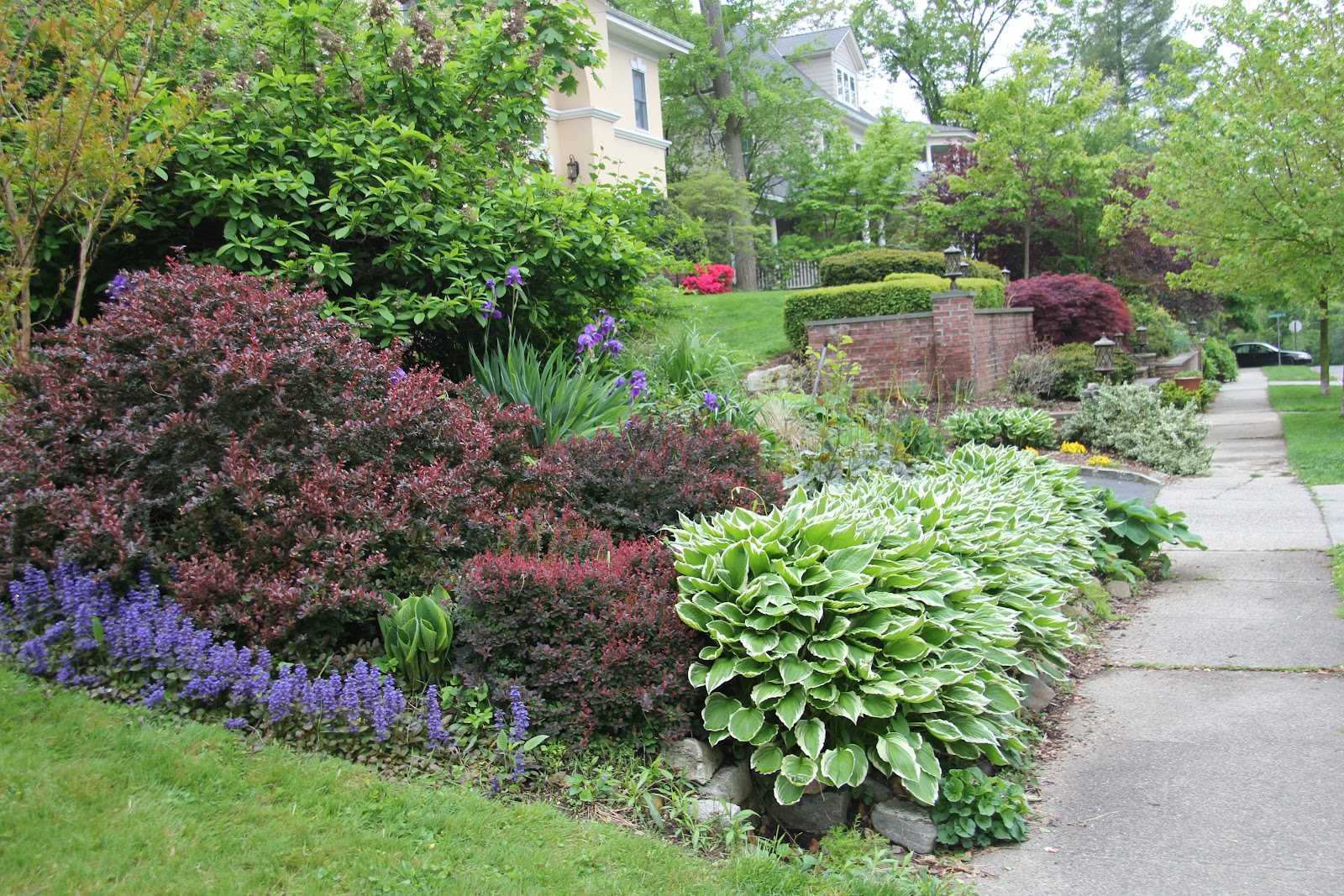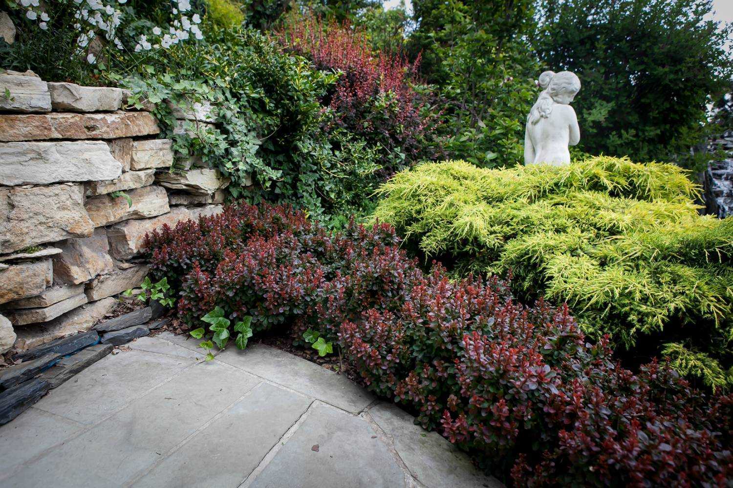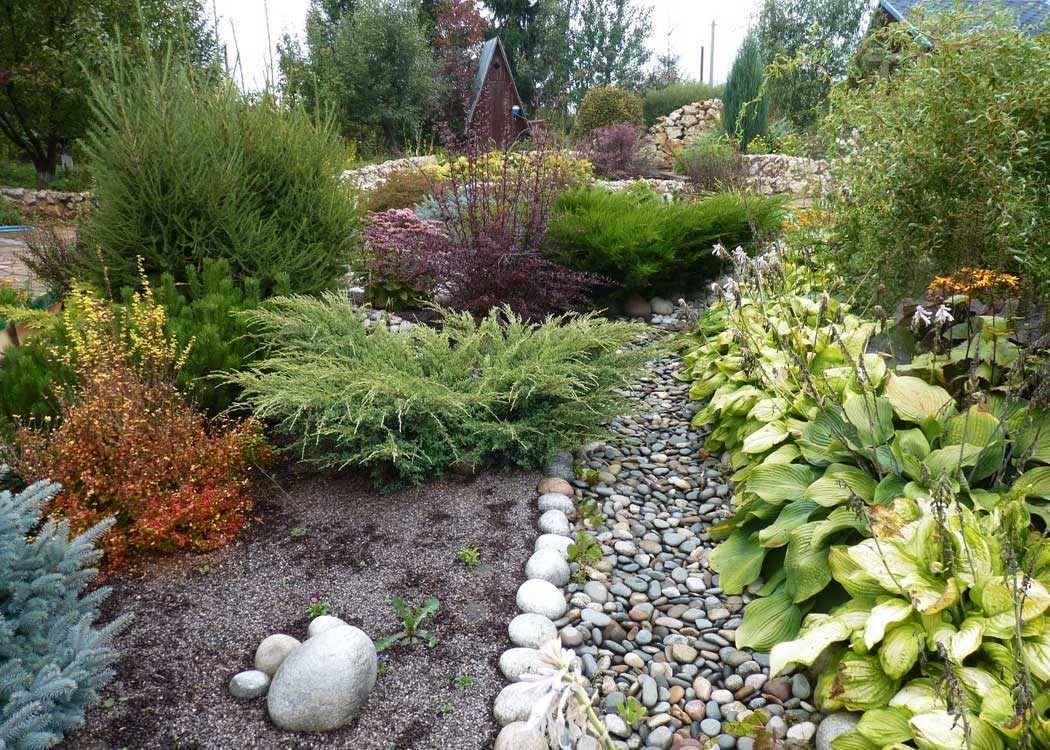 Даже если ваш двор затенён, отказываться от организации подобной ландшафтной композиции не стоит. Достаточно подобрать растения, которые неплохо выдерживают недостаток освещения.