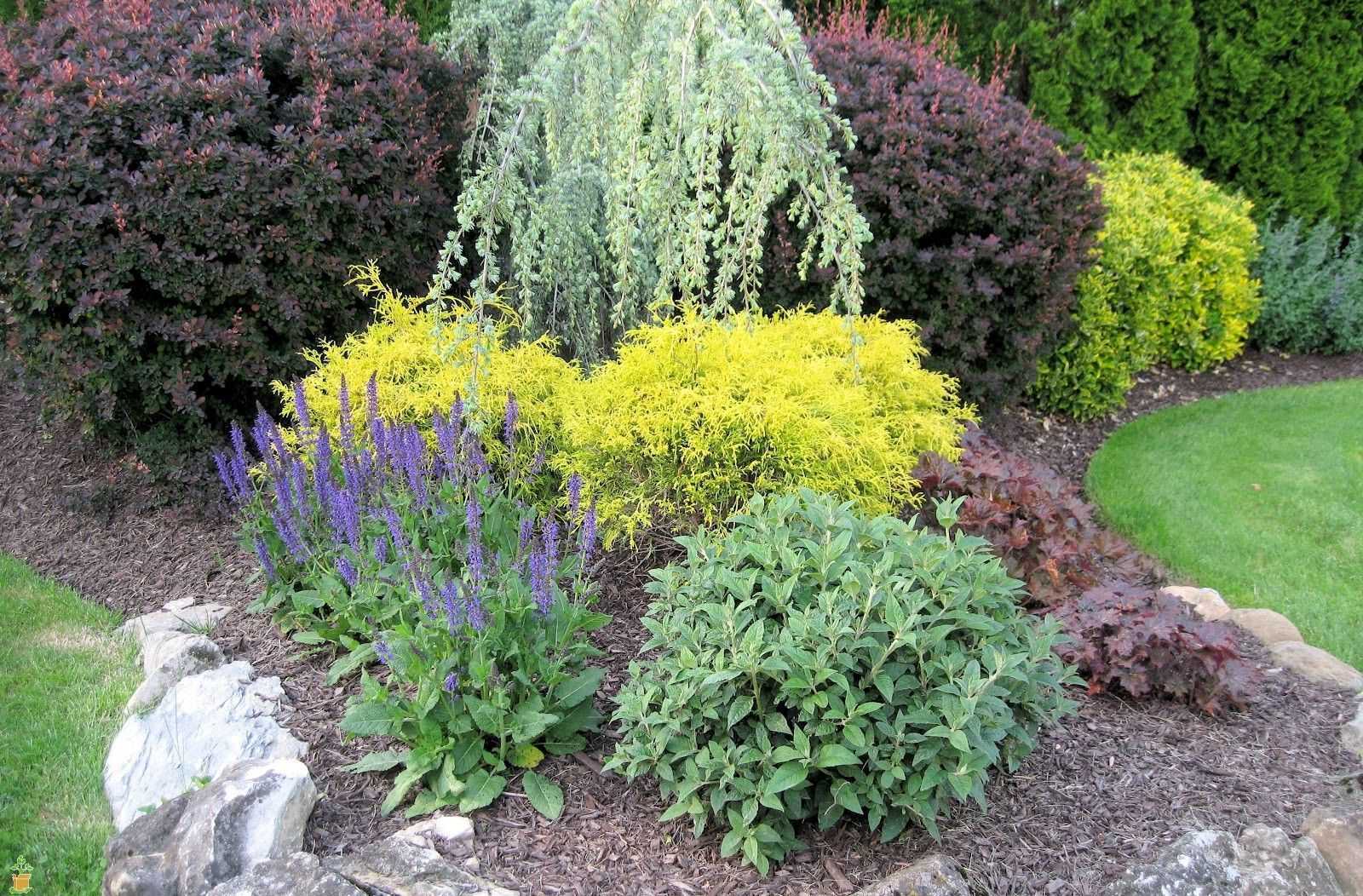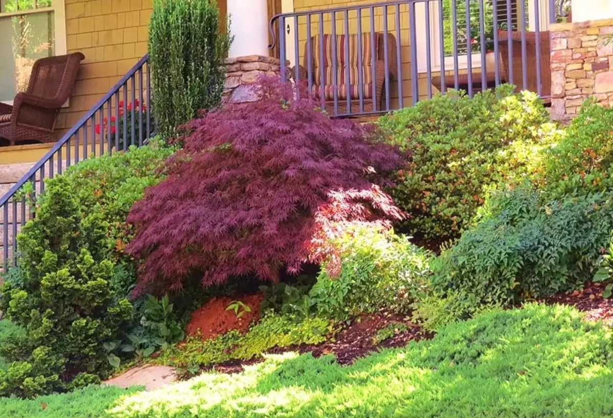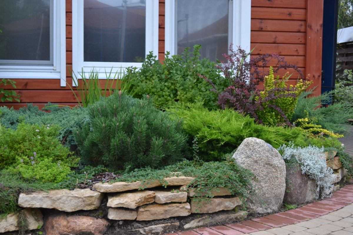 На заднем фоне располагают наиболее высокие культуры: туи (в частности, колоновидные), карликовые сосны, тисы, кипарисовики. На переднем – невысокие и покрывающие землю можжевельники, карликовые туи, ели. В промежутках между ними можно поместить низкорослые лиственные деревья с плакучей кроной – иву, березу. Если затруднительно выбрать деревья для посадки, то оптимальным вариантом будут хвойные или лиственные породы с высоким стволом.