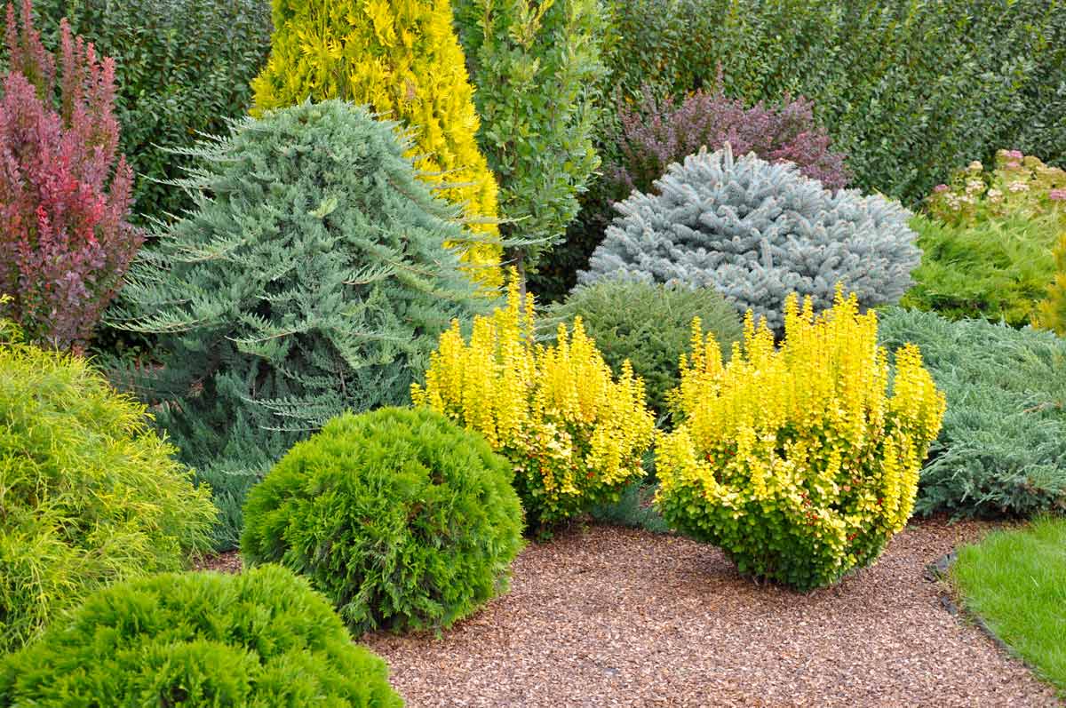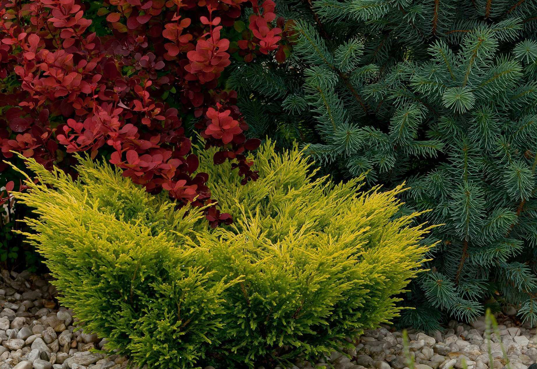 Идеально подойдут ель (Picea), можжевельник (Juniperus), пихту (Abes), тую (Thuja).