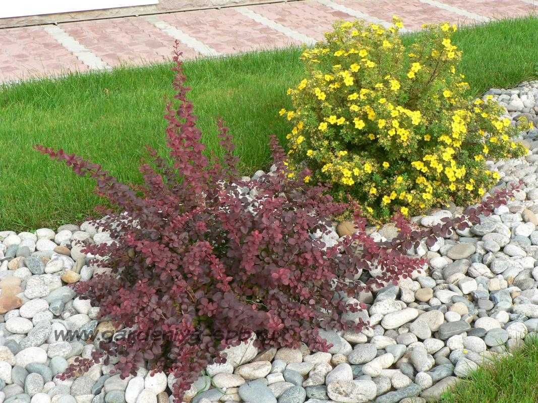 лапчатка кустарниковая, смородина альпийская,