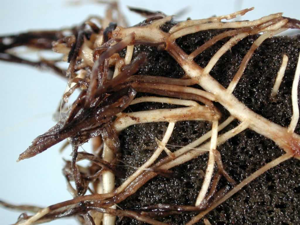 Она возникает, когда влажность земли и воздуха слишком высокая. Из-за грибка растение и его корни начинают гнить. Цветок перестает развиваться, не радует цветением и не выпускает деток. Происходит пожелтение и опадение листьев. Из-за корневой гнили на корнях появляется серый налет, а также бурые пятна. Что делать в рамках борьбы с данным заболеванием: