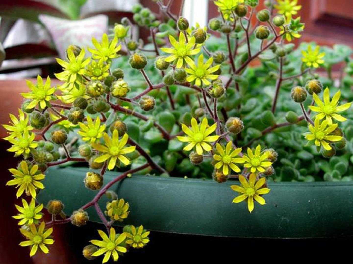 Аихризон цветет обычно в летнее время, но для того, чтобы увидеть цветение аихризона, необходимо соблюсти определенные условия: горшок не должен быть просторным, полив не должен быть слишком частым, зимовка растения должна пройти в прохладном светлом месте. Как видите, сверхъестественных усилий от вас не потребуется, но если вы выполните перечисленные требования, то сможете наслаждаться цветением аихризона в течение полугода. Только когда этот праздник закончится, вы обнаружите, что растение потеряло больше половины листьев, поэтому срежьте все отцветшие цветоносы, слабые побеги и увеличьте полив, чтобы растение смогло постепенно восстановиться.