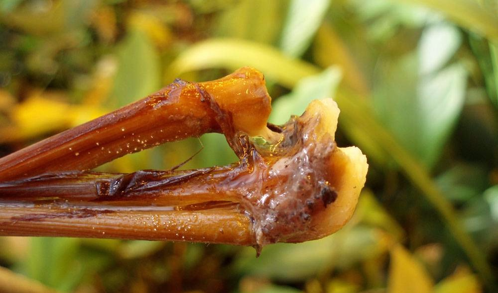 | Гниль стеблей | Гнилостные пятна на стеблях. | Развитие грибка провоцируют переувлажнение почвы, низкая температура содержания и плохо проветриваемое помещение. |