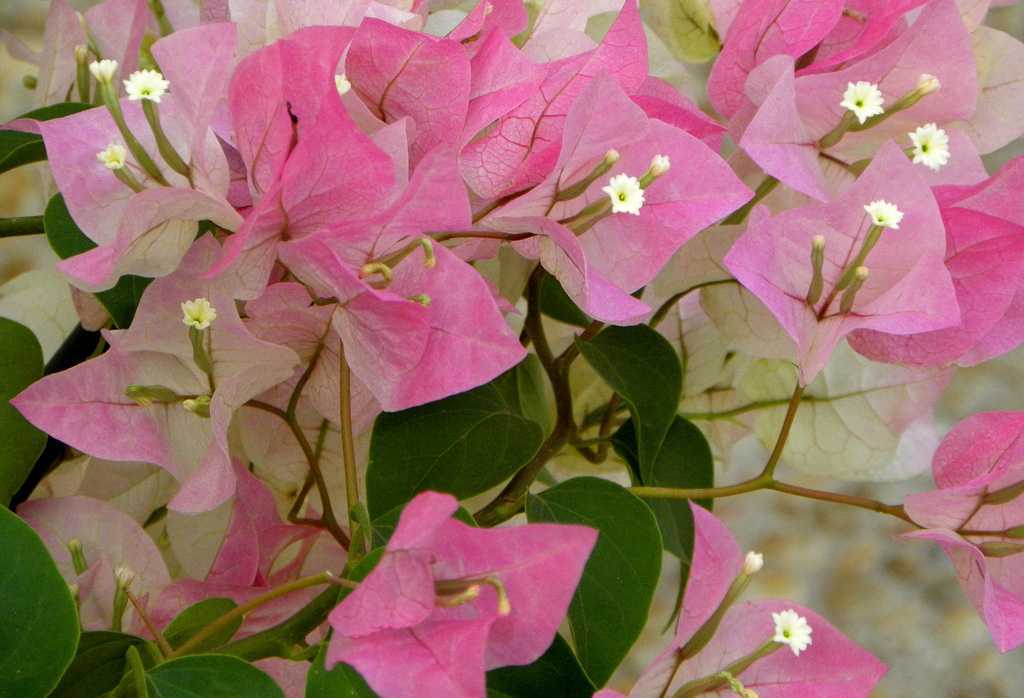 С вечнозеленой и вечноцветущей красавицей Бугенвиллией или «чудо-цветком», именно так это удивительное растение часто называют в Европе, связано множество интересных историй, примет и суеверий. Это неудивительно. Чего стоит хотя бы тот факт, что ее пышные, красочные, украшающие крону круглый год гроздья соцветий на самом деле не цветы, а листья.